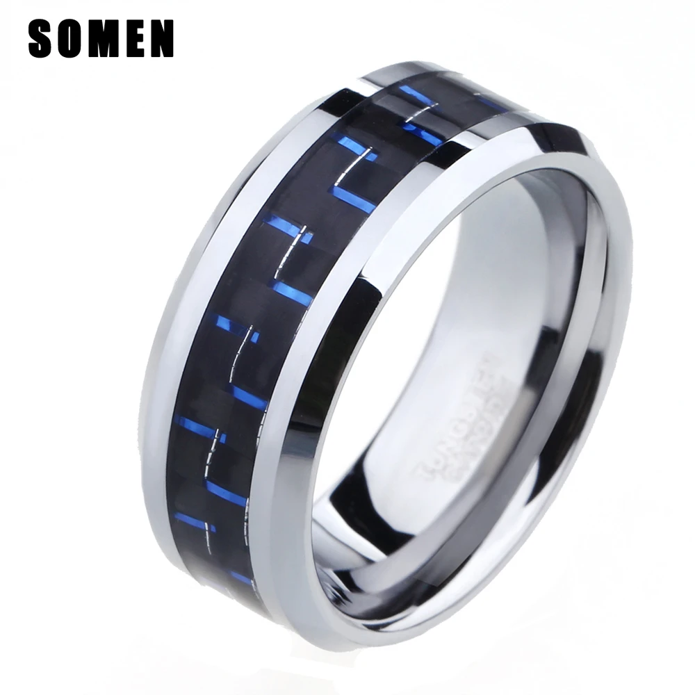 8mm Black Blue Carbon Fiber Tungsten Ring Polished Beveled Edges Men Rings Fashion Male Jewelry Mood Ring Wedding Band Anillos Rings Aliexpress